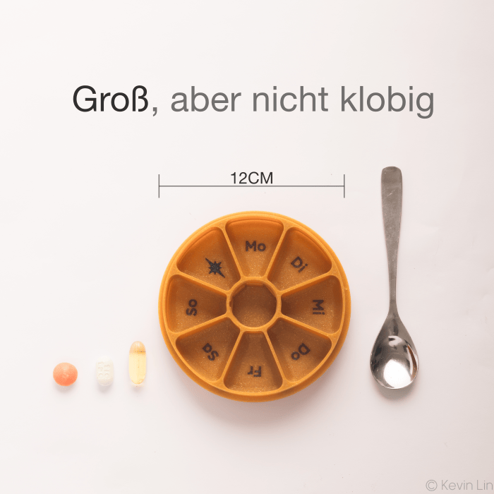 Jedes Fach fasst problemlos große Kapseln, Fischöl oder Vitamine.