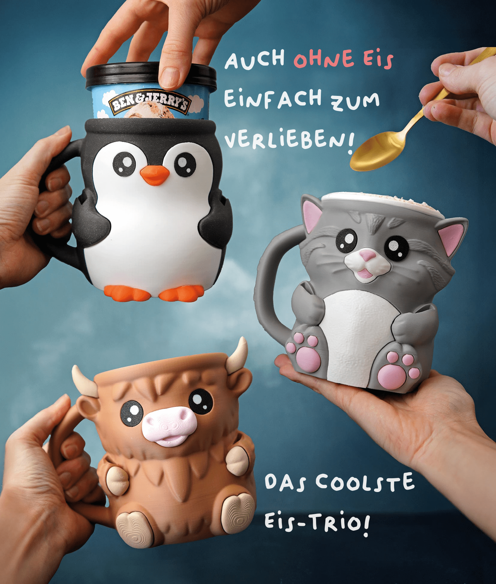 Ferdinand the Highland Cow, Pebbles the Penguin, and Cuddles the Cat are more than just pint holders — they’re the ultimate chill buddies. Whether you pick one, two, or collect all three, your scooping sessions just got a whole lot cuter. Why choose between fluffy, feathery, and purry when you can have them all?